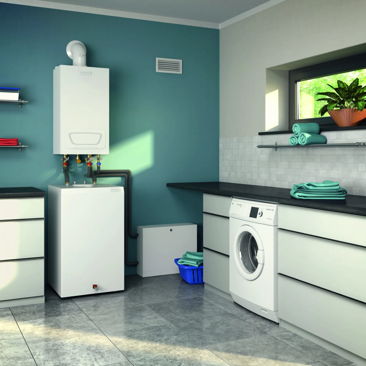 Kocioł gazowy kondensacyjny Brötje WGB-M EVO 20 wyróżnia fakt, iż urządzenie można połączyć z różnymi instalacjami: popularnym ogrzewaniem podłogowym oraz z ekologicznymi odnawialnymi źródłami energii. Urządzenie posiada zintegrowany obieg grzewczy z zaworem mieszającym dzięki czemu: